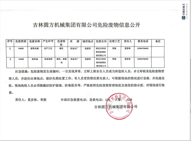 2025年公司危險廢物信息公示